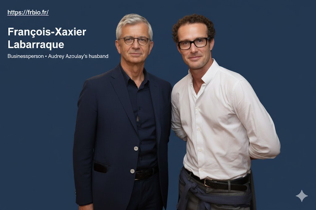 François-Xavier Labarraque est marié à Audrey Azoulay, une figure importante de la politique française et internationale. Audrey Azoulay a été Ministre de la Culture et de la Communication en France avant de devenir la Directrice générale de l’UNESCO en 2017. Le couple a deux enfants, et leur vie familiale, bien que discrète, est parfois mentionnée dans les médias en raison de l’influence de leur relation.